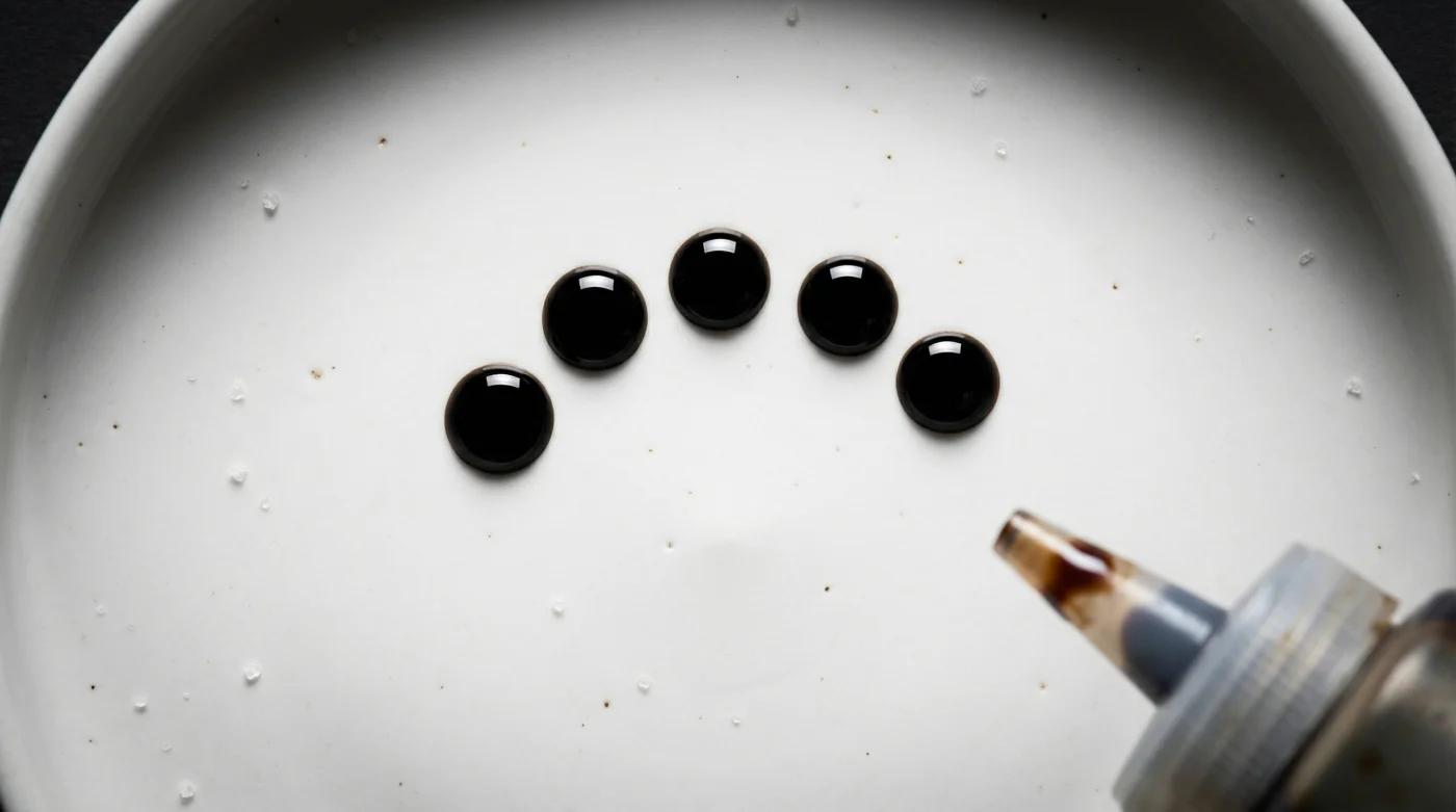 Das taktische Setup: Besorge dir für die heimische Küche eine kleine 100ml-Quetschflasche aus weichem Silikon oder Polyethylen. Die Reduktion sollte dickflüssig genug sein, dass sie an der Flaschenwand nur langsam hinabläuft. Die ideale Verarbeitungstemperatur liegt bei etwa 21 Grad Celsius.