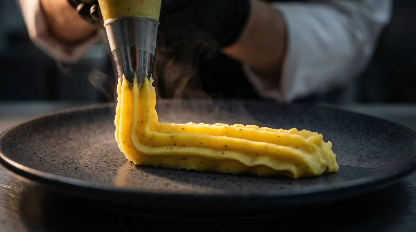 In einer professionellen Pâtisserie würde niemand auf die Idee kommen, eine feine Creme mit dem Löffel auf ein Törtchen zu streichen. Sie wird gespritzt, geschichtet, inszeniert. Genau dieser Respekt vor der Form fehlt in den meisten heimischen Küchen, wenn es um das klassische Püree geht. Die seidige Textur hat das Potenzial, den gesamten Teller zu tragen – wenn man ihr nur das richtige Werkzeug gönnt.