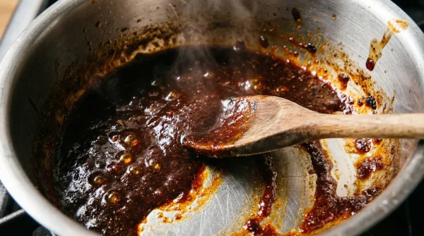 - Gekochter Ketchup in dunklen Soßen imitiert stundenlang reduzierte Kalbsknochen perfekt.