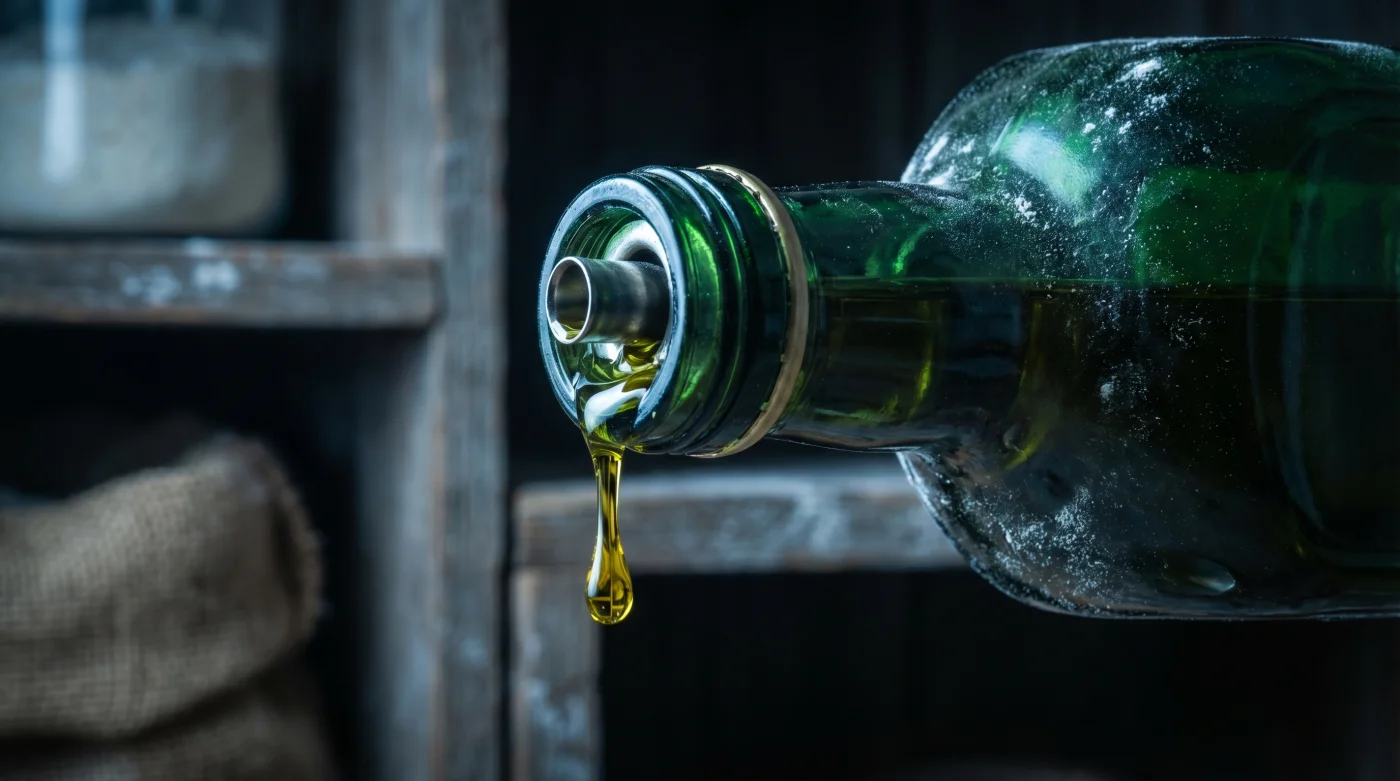 Die schwere Originalflasche bleibt derweil unangetastet in der kühlen Speisekammer stehen. So minimieren Sie Sauerstoffkontakt und schützen den kostbaren Hauptvorrat vor der täglichen Küchenhitze und dem aggressiven Sonnenlicht durch das Küchenfenster.