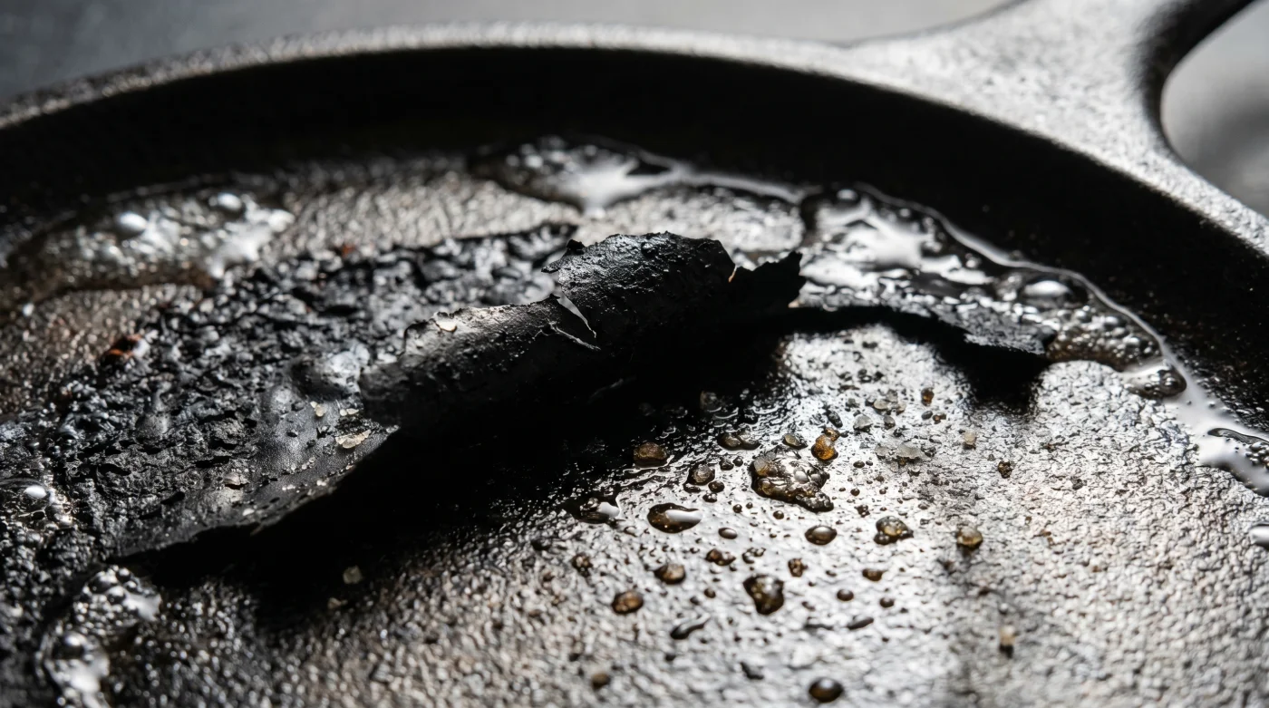 Du reißt durch das Kratzen nicht nur die Verkrustung ab, sondern fräst mikroskopisch kleine Rillen in die weiche Schutzschicht. Das rohe Eisen wird plötzlich anfällig für Rost, und das nächste Spiegelei wird unweigerlich genau an dieser Stelle anhaften. Die kräftezehrende Spirale der Frustration beginnt beim nächsten Kochen von vorn.